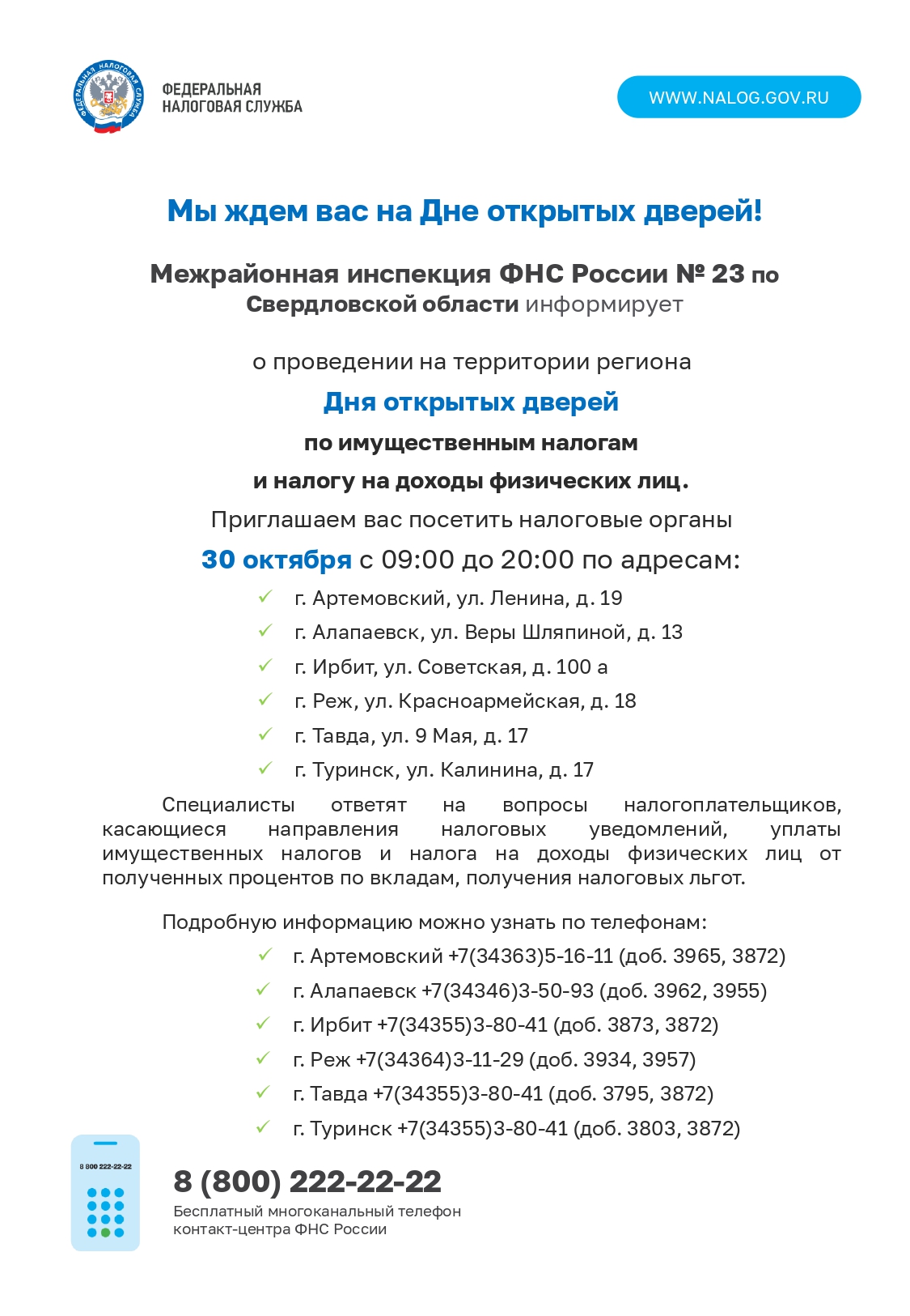 Информация Межрайонной инспекции Федеральной налоговой службы № 23 по Свердловской области